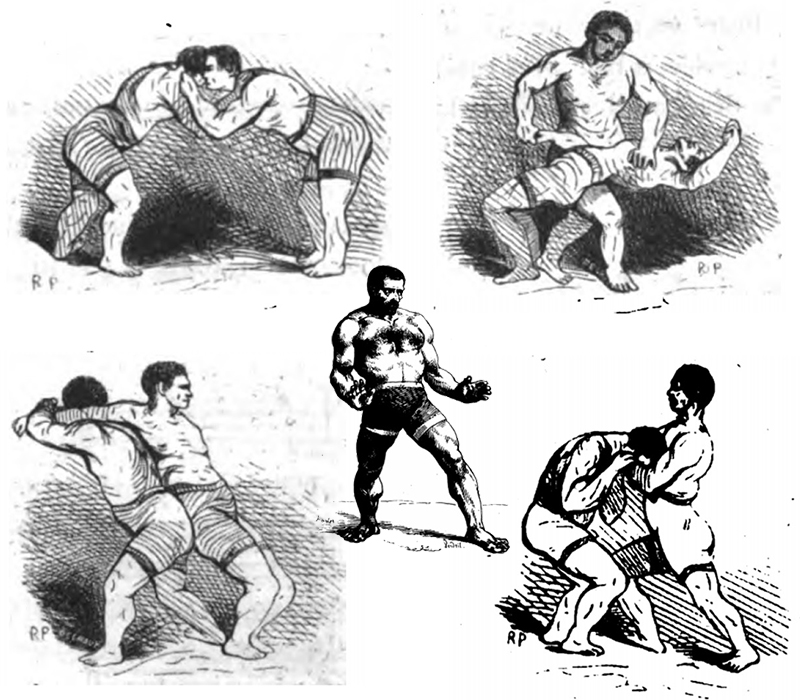 In France the folk wrestling styles of the residents of Provence were still around even in the 1860s until they were completely replaced with the modern French or Graeco-Roman style, which back then was also known as a “flat hand” wrestling (la lutte à main plates).