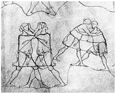 Depictions of both those wrestling styles also could be found in a 13th century Sketchbook by the architect called Villard de Honnecourt. His name and dialect indicate that he was born in Honnecourt, a small town near Cambrai in northeastern Picardy at the frontiers of Artois and Flanders.